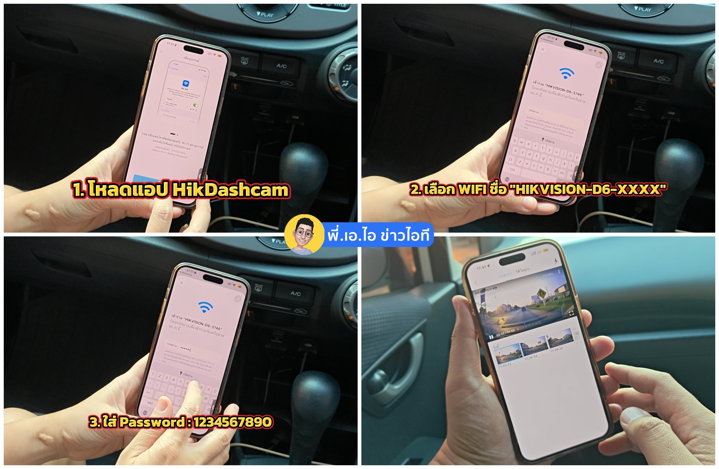 3. จัดสายไฟแล้วต่อสายไฟ ดูว่าไฟเข้าหรือเปล่า หลังจากนั้นก็เชื่อมต่อแอป HIK Dashcam ครับ