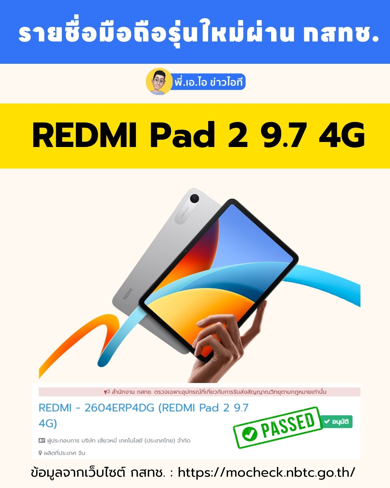 เปิดมาหลังสงกรานต์ Xiaomi Thailand ส่งแท็บเล็ตรุ่นใหม่ REDMI Pad 2 9.7 4G เข้ามาทำตลาดในไทยอีกรุ่น โดยรอบนี้เน้นพกพาง่าย ด้วยหน้าจอ 9.7″