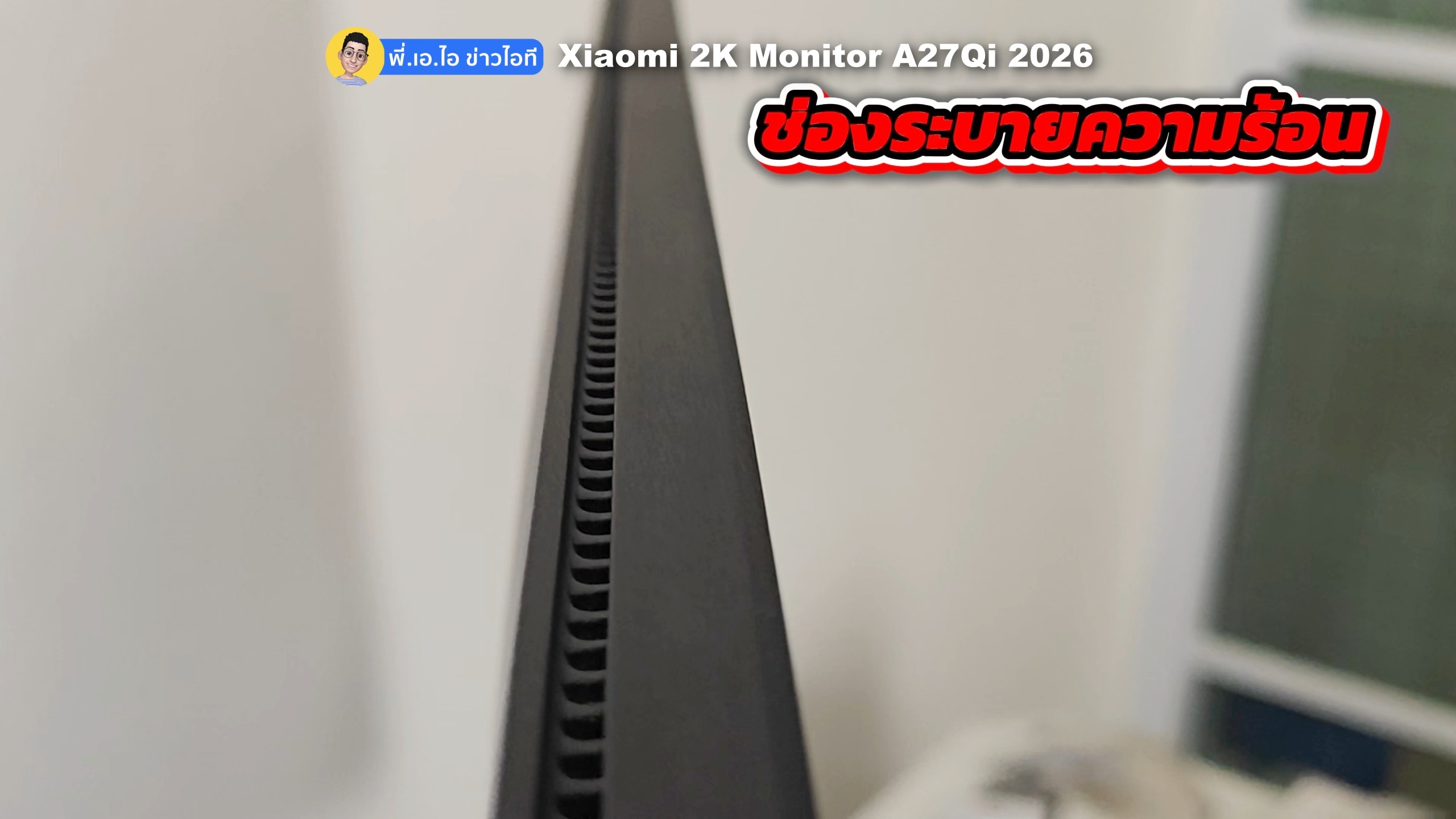 – Xiaomi 2K Monitor A27Qi 2026 ดีไซน์ไร้ขอบทั้ง 3 ด้าน บน ซ้าย ขวา ส่วนด้านล่างก็จะมีขอบบางๆ ส่วนเฟรมรอบตัวจะไม่ใช่แบบทึบแล้ว แต่จะเป็นช่องเล็กๆ ดูแล้วเพื่อจะเอาไว้ใช้ระบายความร้อนครับ