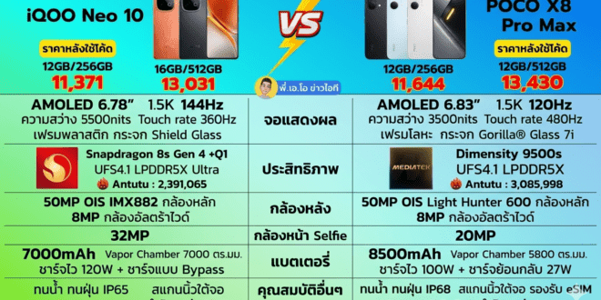 อ่านต่อ..เทียบสเปค IQOO Neo 10 กับ POCO X8 Pro Max งบเท่าๆ กันเลือกตั …